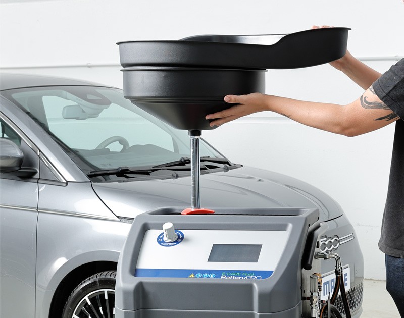 Nutzen Sie E-CARE Fluid, um den Kühlkreislauf der Hochvoltbatterie zu warten, indem Sie das Kühlmittel austauschen und das System auf Leckagen überprüfen.