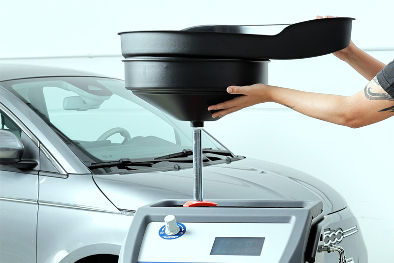 E-Care Fluid ist in der Lage, neues Kühlmittel in den neuen Tank zu pumpen oder mit der Funktion “Auto Blending Fluid” eine prozentuale Kühlmittelmischung herzustellen.